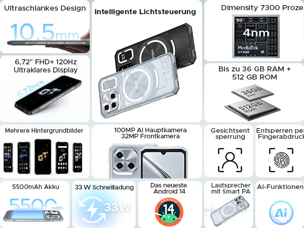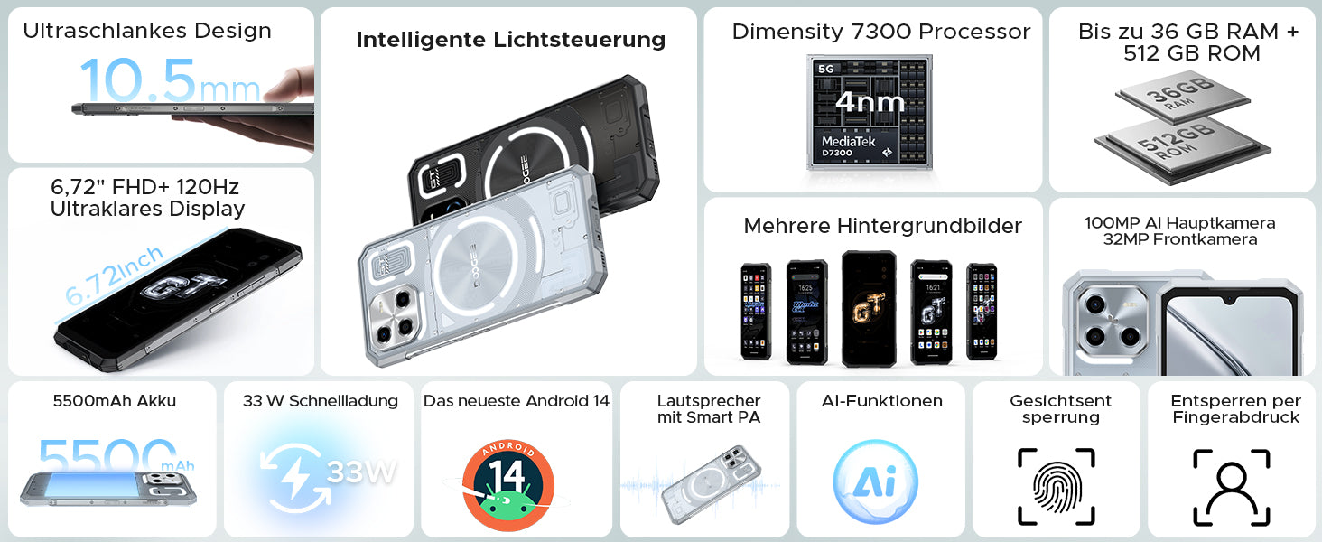 DOOGEE Blade GT Ultra 10,5 mm Ultradünn 36 GB RAM Dimensity 7300 5G Android 14 Outdoor Handy