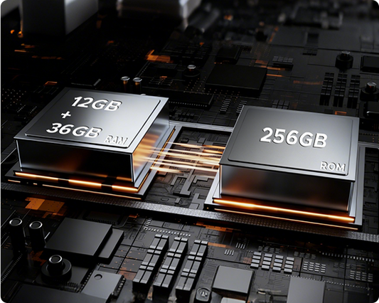 - 48 GB RAM (12 GB + bis zu 36 GB erweiterter RAM) + 256 GB ROM LPDDR5